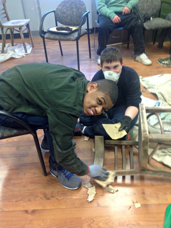 Week #2 they selected different paint colors to used, and then began to paint the chairs, using stencils and techniques such as “sponging and taping off ” certain areas to create different patterns. The creative juices were definitely flowing! The awards were given to Joe and Nick S. for their hard work! “It was great, painting the chairs,” said Nick. “I have never painted a chair before. It is fun!”