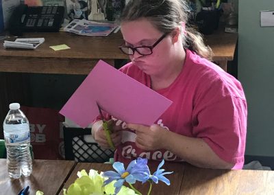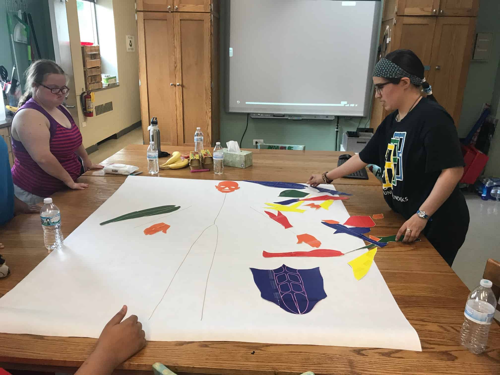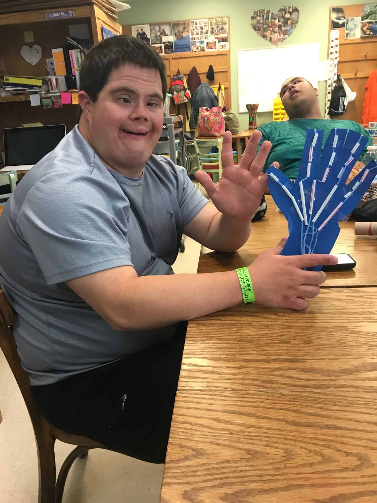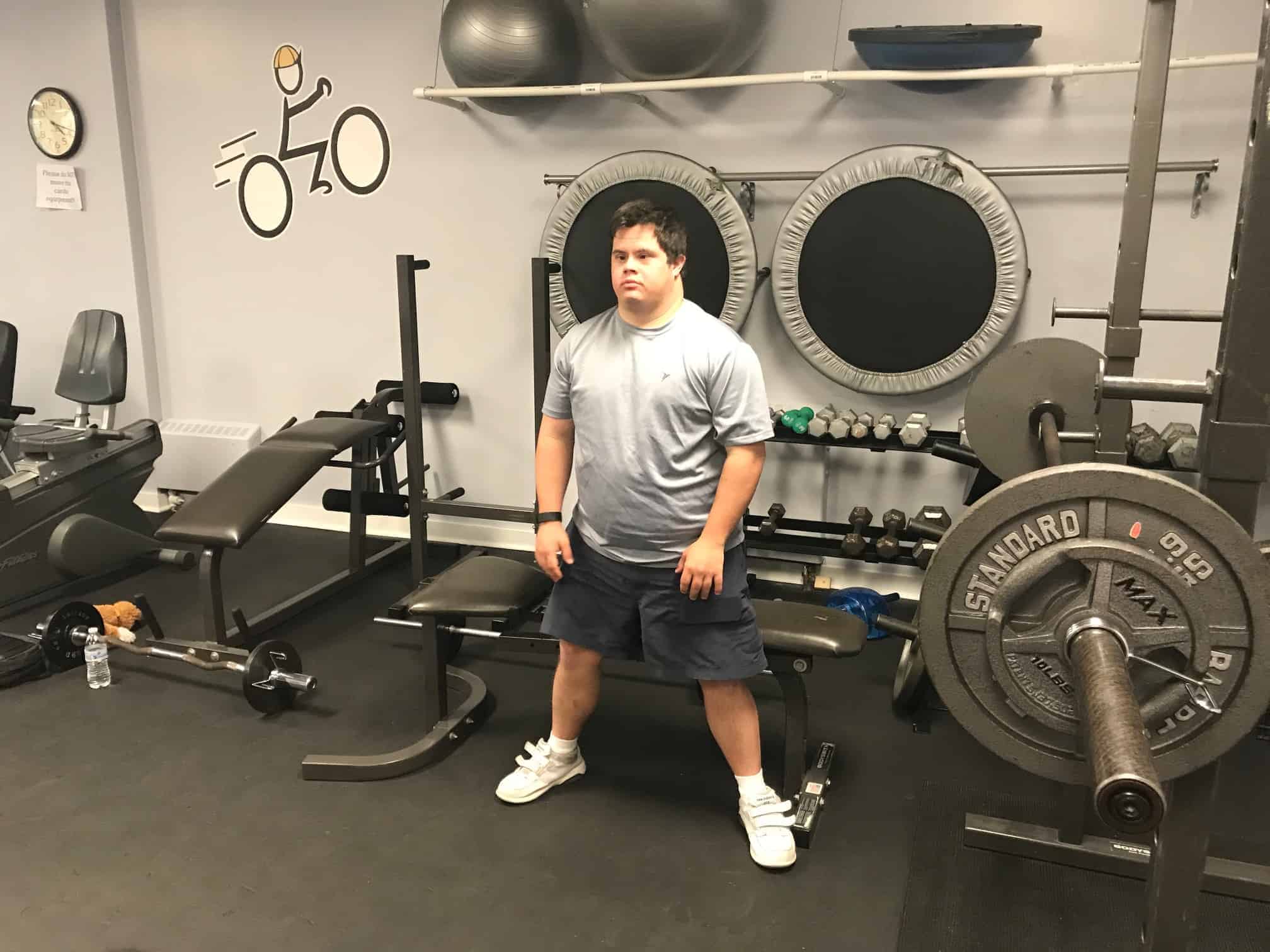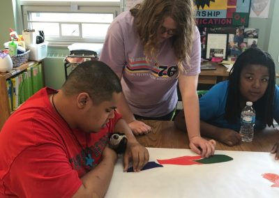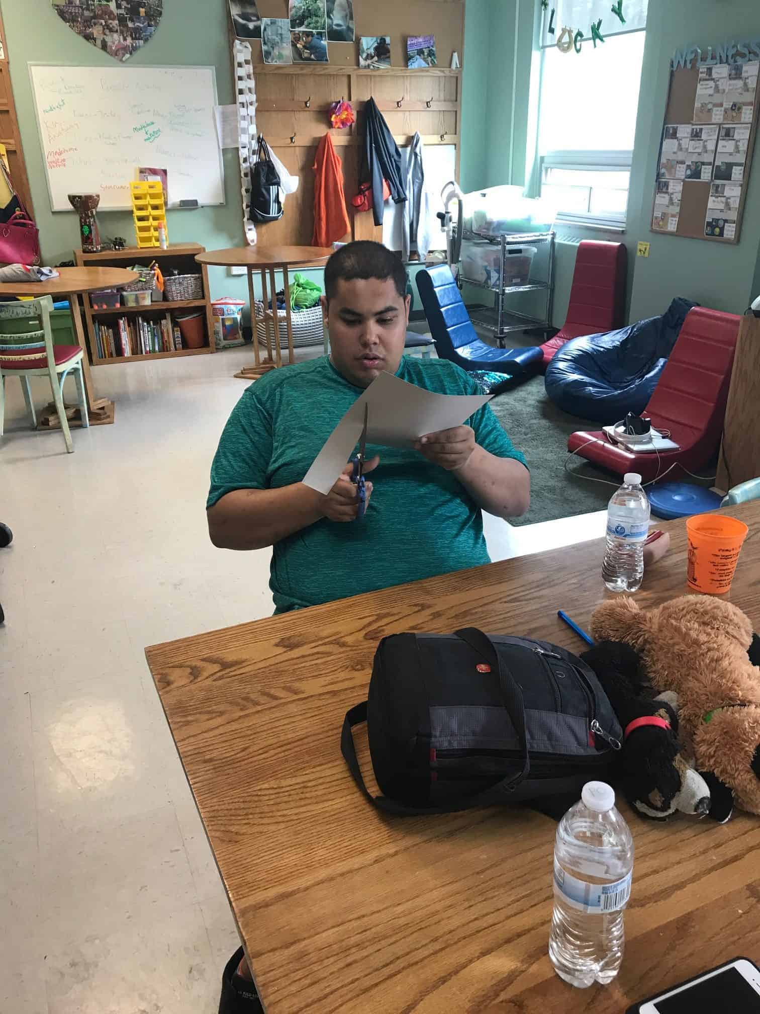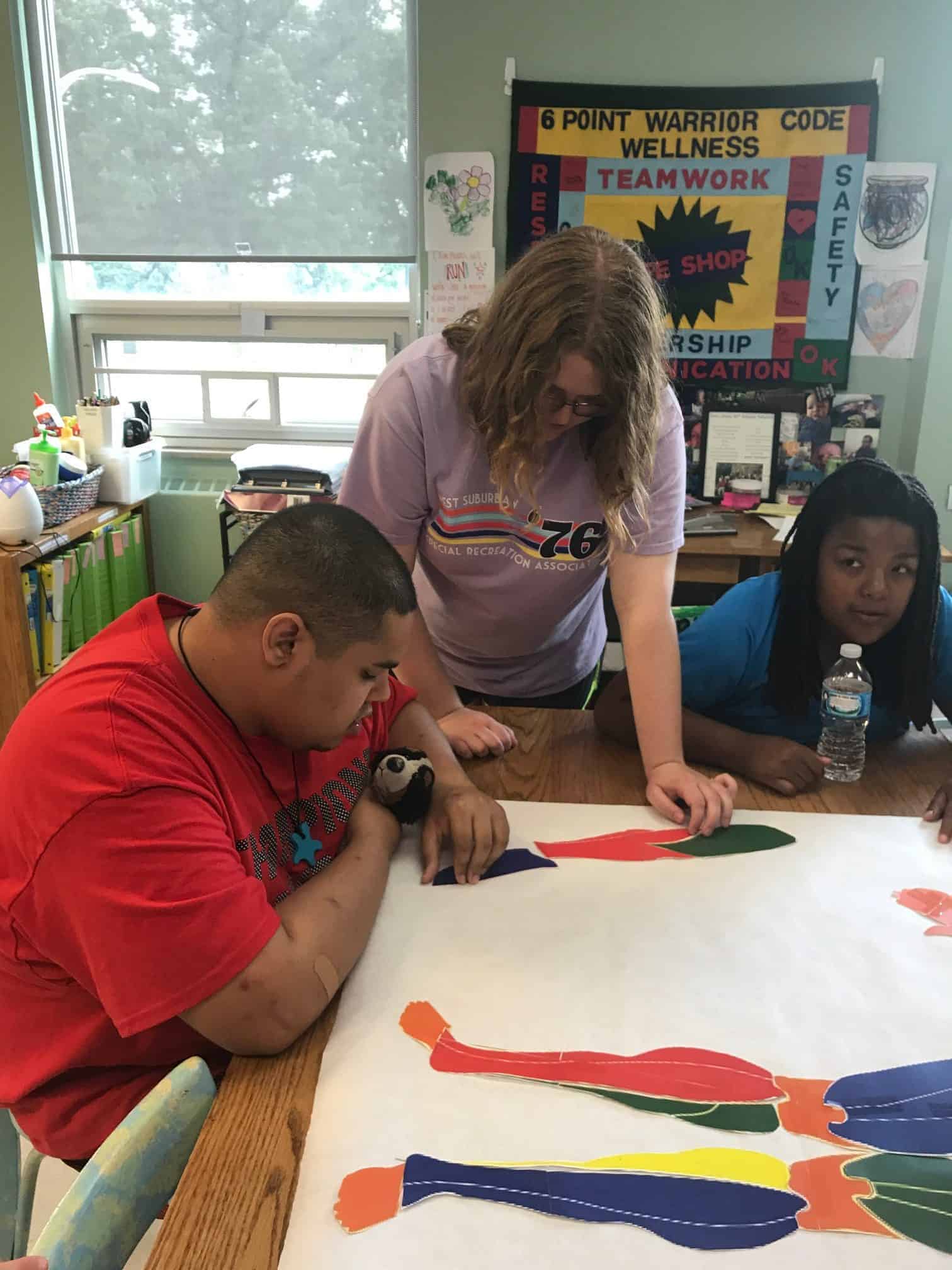 The fitness portion of this session of Workout Warriors focused on circuit training -a combination of aerobic training and muscle strengthening. We start each 35 minute workout session with a dynamic warm up of arm circles, jumping jacks, running in place and other activities that get our blood flowing. Exercises included using the battle rope, sit to stands on the bench, step ups, weighted ball slams, and the treadmill!