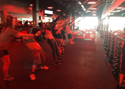 …and it’s not just the lighting! Warriors are working to get their heart rates elevated to the orange zone with help from Coach K at Orangetheory Fitness Oak Park!