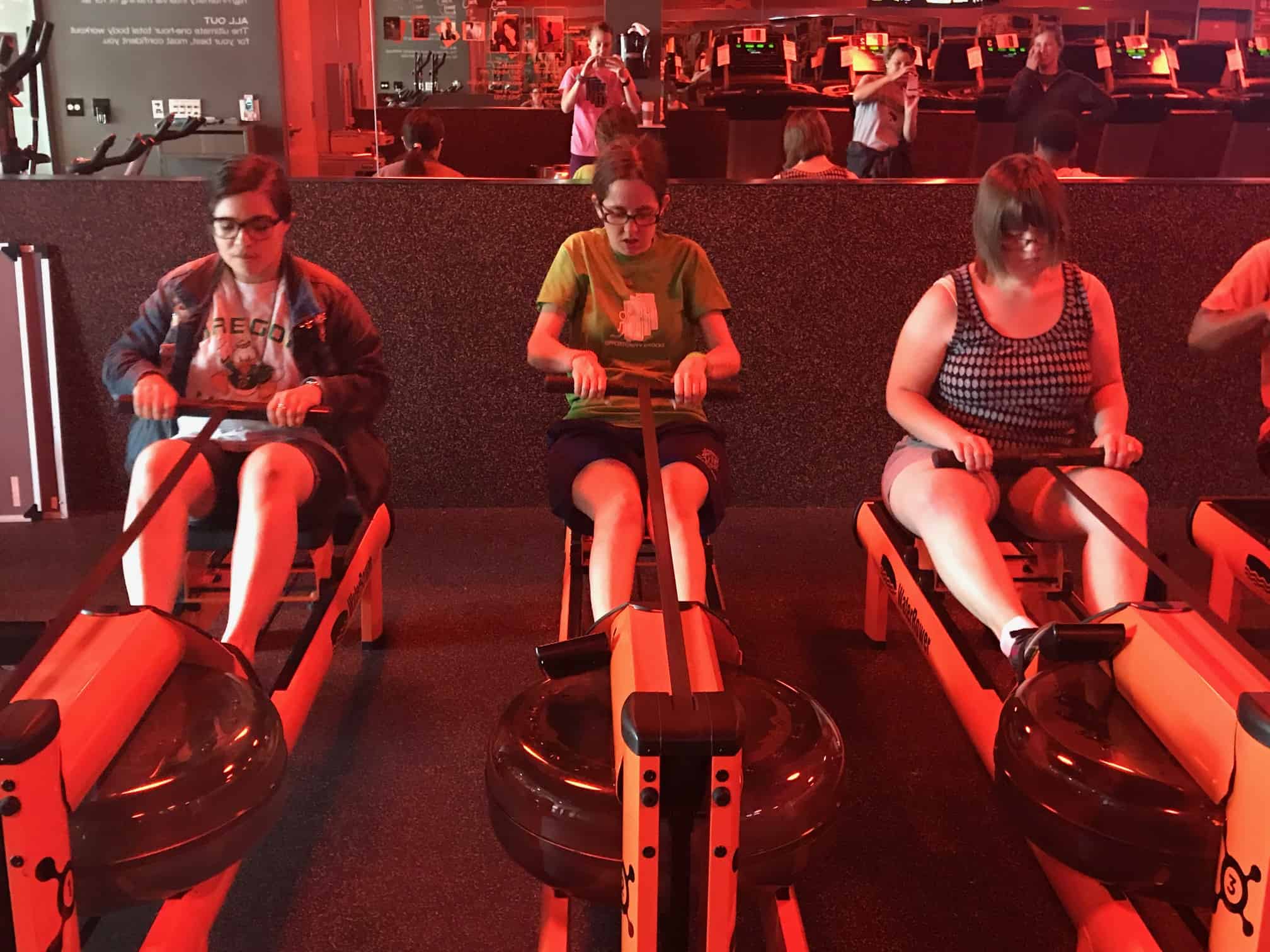 Intervals on the treadmill with BIG inclines and LOTS of hill climbs, jumping jacks, push ups, steps ups, squats, and rowing – we are leaving our weekly Thursday class sweaty and ready to take on our next workout!