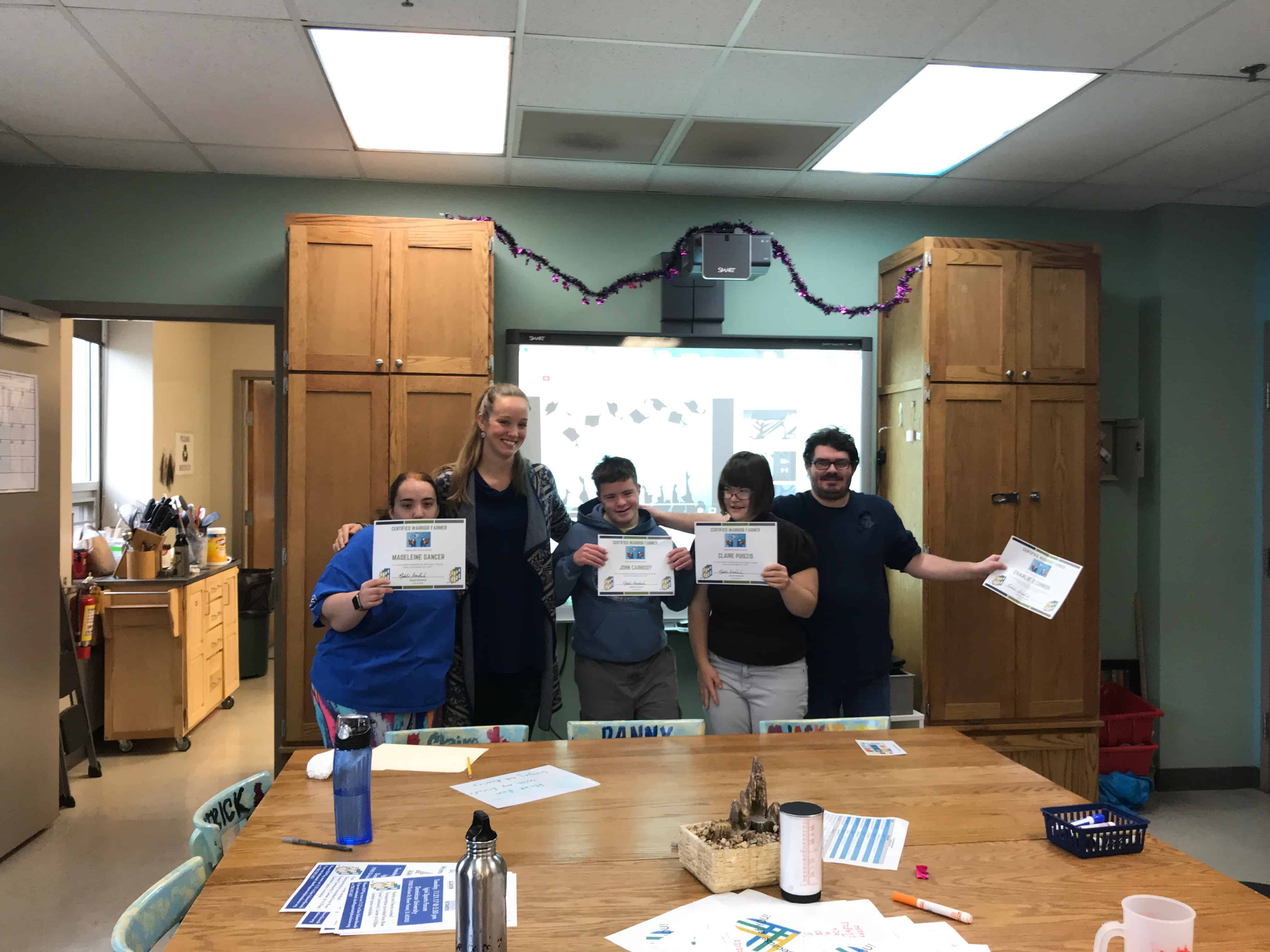 In August, we hired our full-time Farm Director, Natalie. Her philosophy is to continue to engage the Warriors on the farm and build upon their understanding of the farm and how it works. She has launched the OK Grower’s School in the Life Shop which is an eight-week workshop designed to educate and train Warriors on what it takes to be a farmer. Lessons covered soil composition, plant life cycles, composting, pollinators, and local food systems. By developing their understanding of farming, Warriors can now be more involved in farm operations and assist Farmer Natalie with crop planning, planting, harvesting and more! Claire, Karisa, Madeleine, John, and Charlie are the first certified Warrior Farmers! Stay tuned for updates on Grower’s School and the OK Farm!