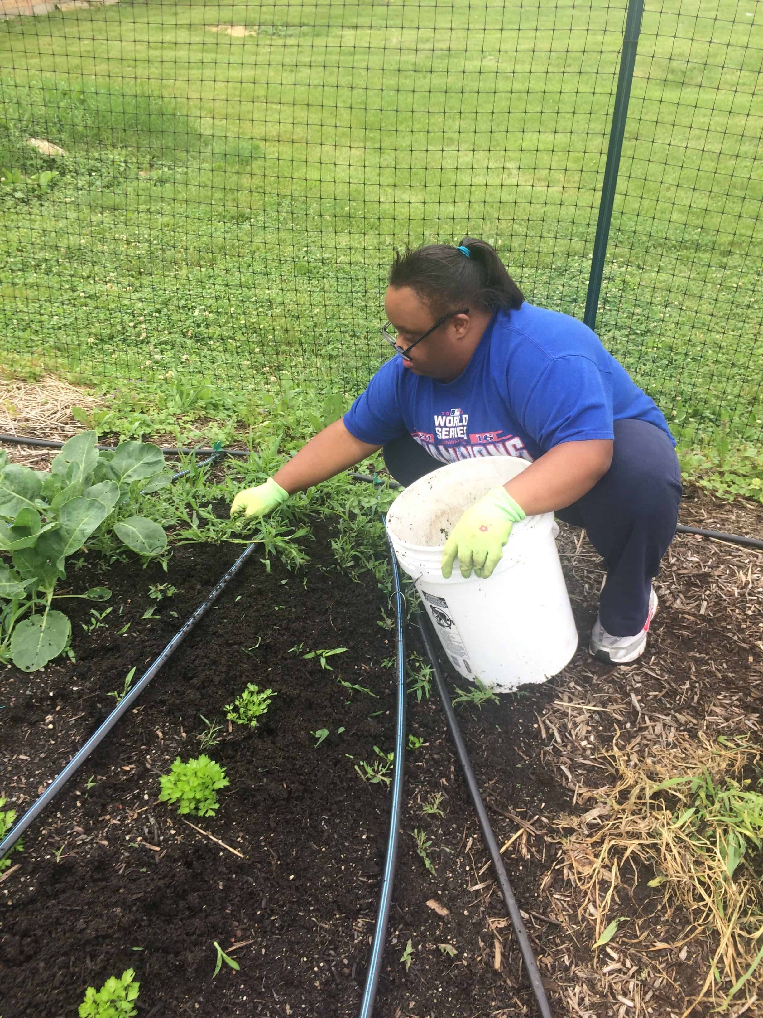 We were only forced to be inside during one rainy Monday. On this day we made planter signs using beads and wire. This will help us remember what we planted and where. On the remaining days where we got to be outside, Warriors were not afraid to get dirty.