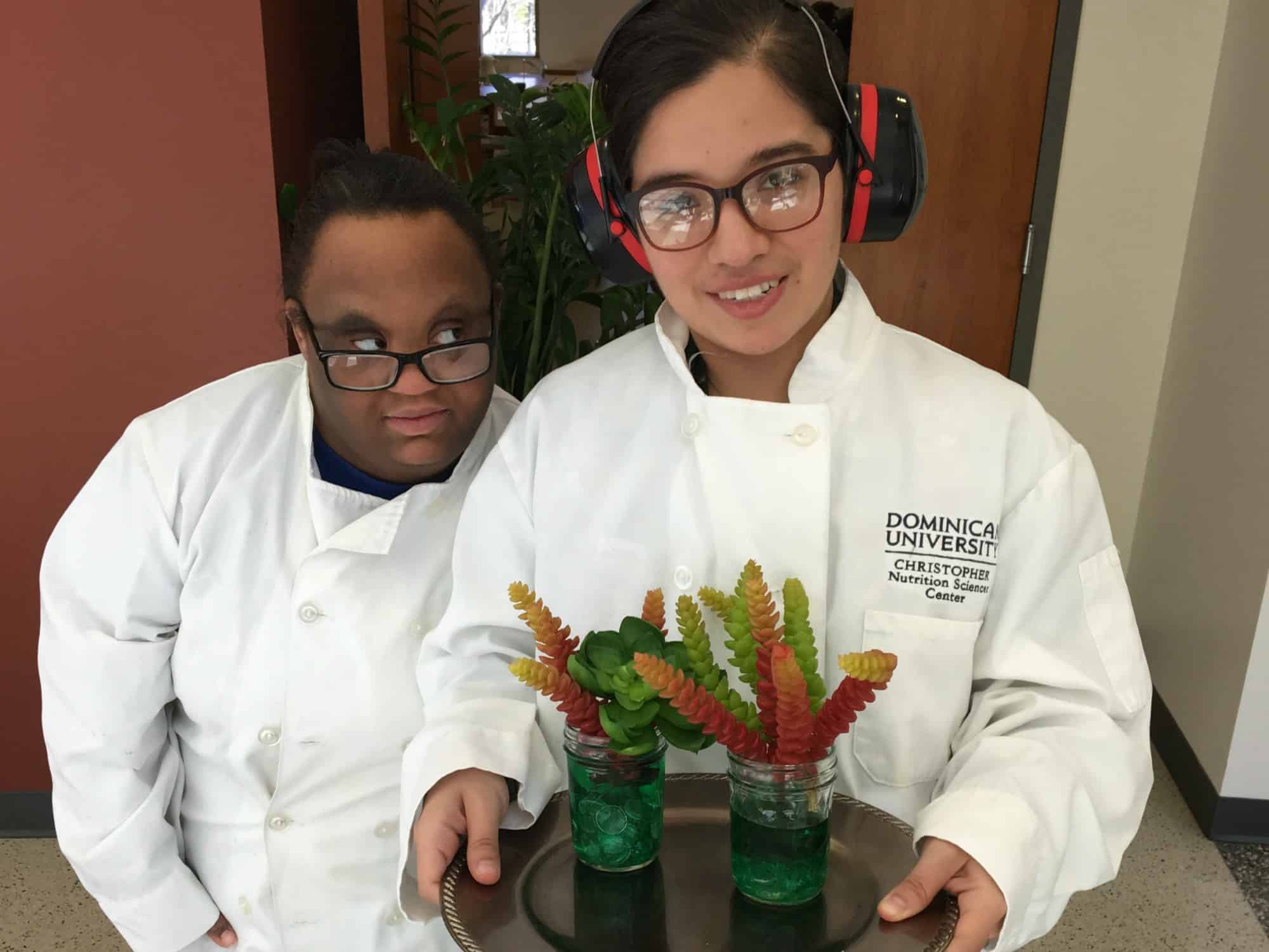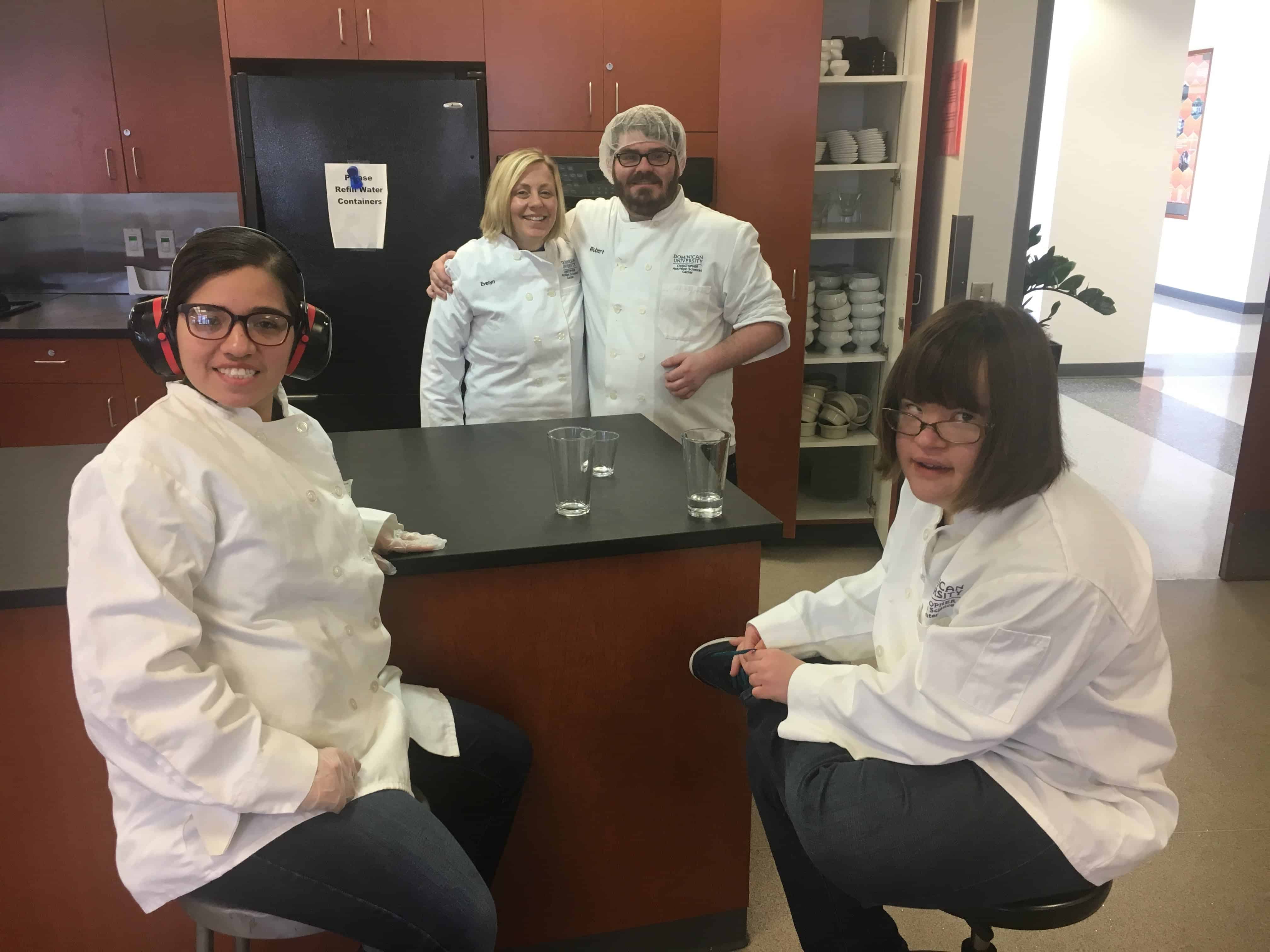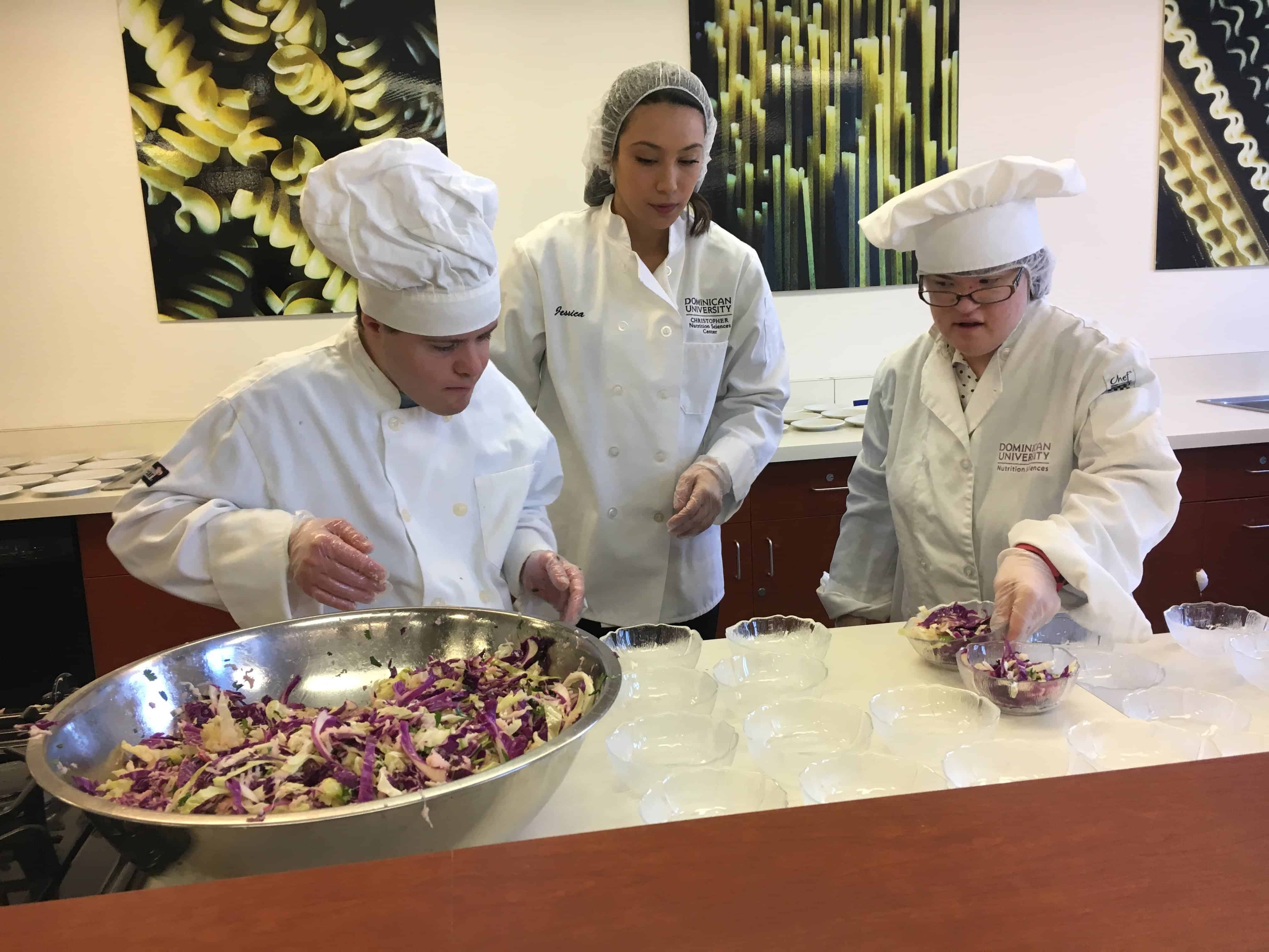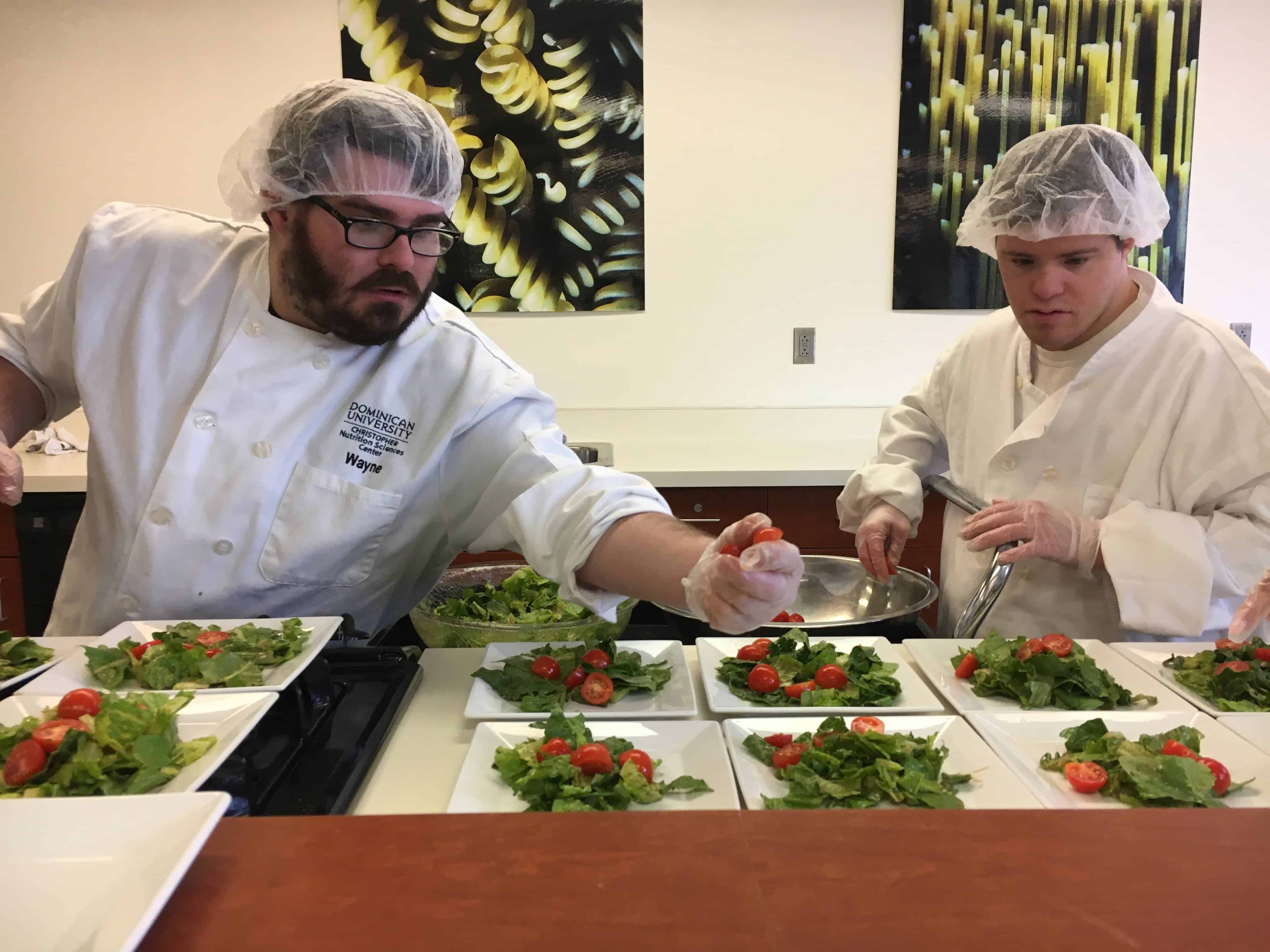 This spring, we tried out some new nutrition endeavors. During the first part of the semester, our intern and Warriors took their nutrition lessons to another local disability service agency, Aspire, and led activities with their participants. During the ladder half of the semester we participated in the Dominican University Recipe Box program and helped DU nutrition students and faculty prepare special, nutritious 3-course lunches for students and community members at the DU campus. We had a great time this semester working with Aspire and DU Nutrition!