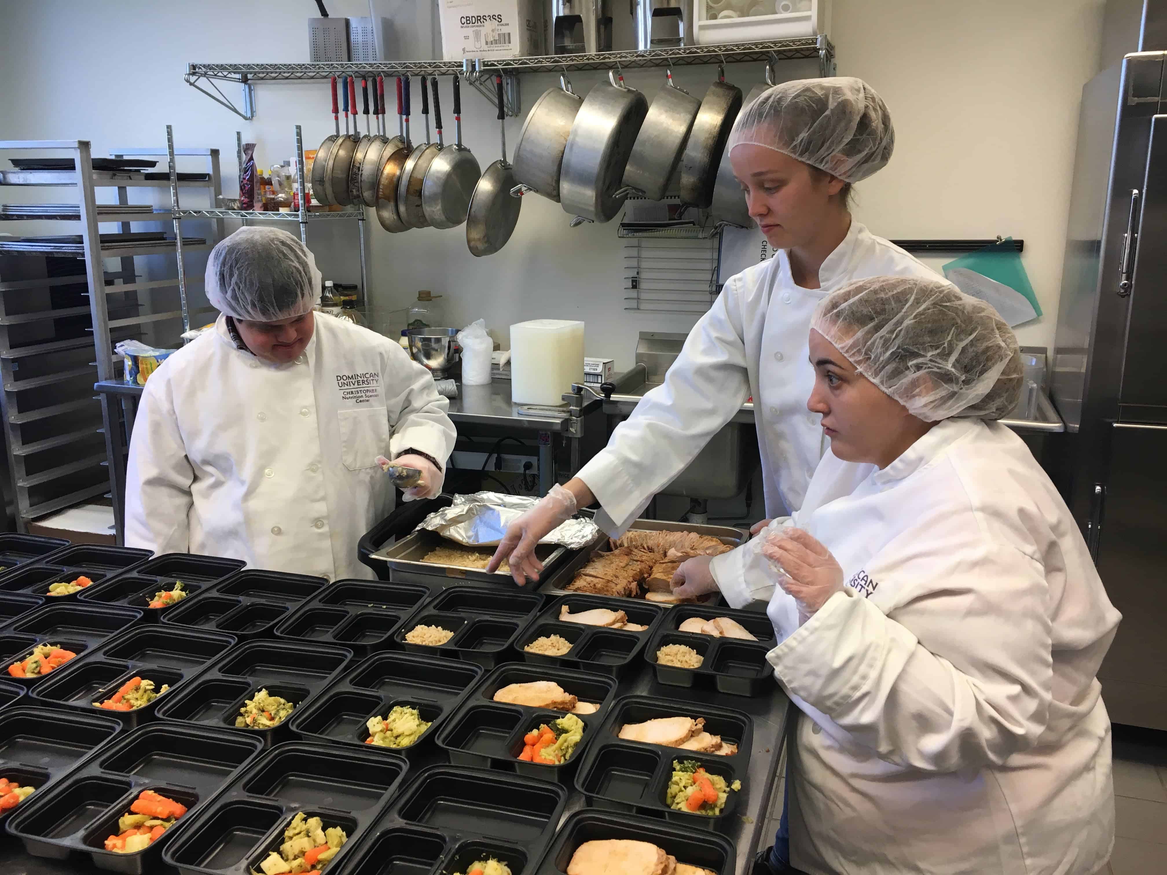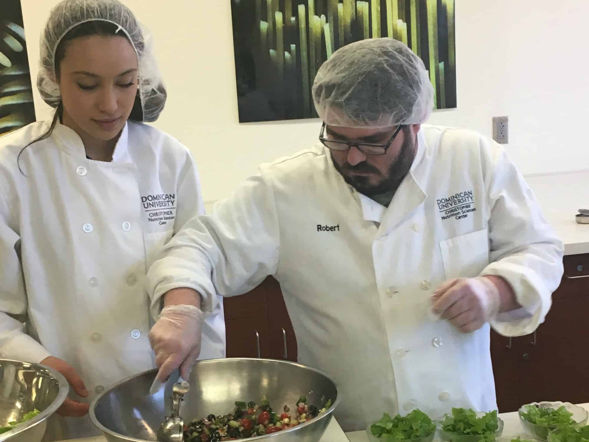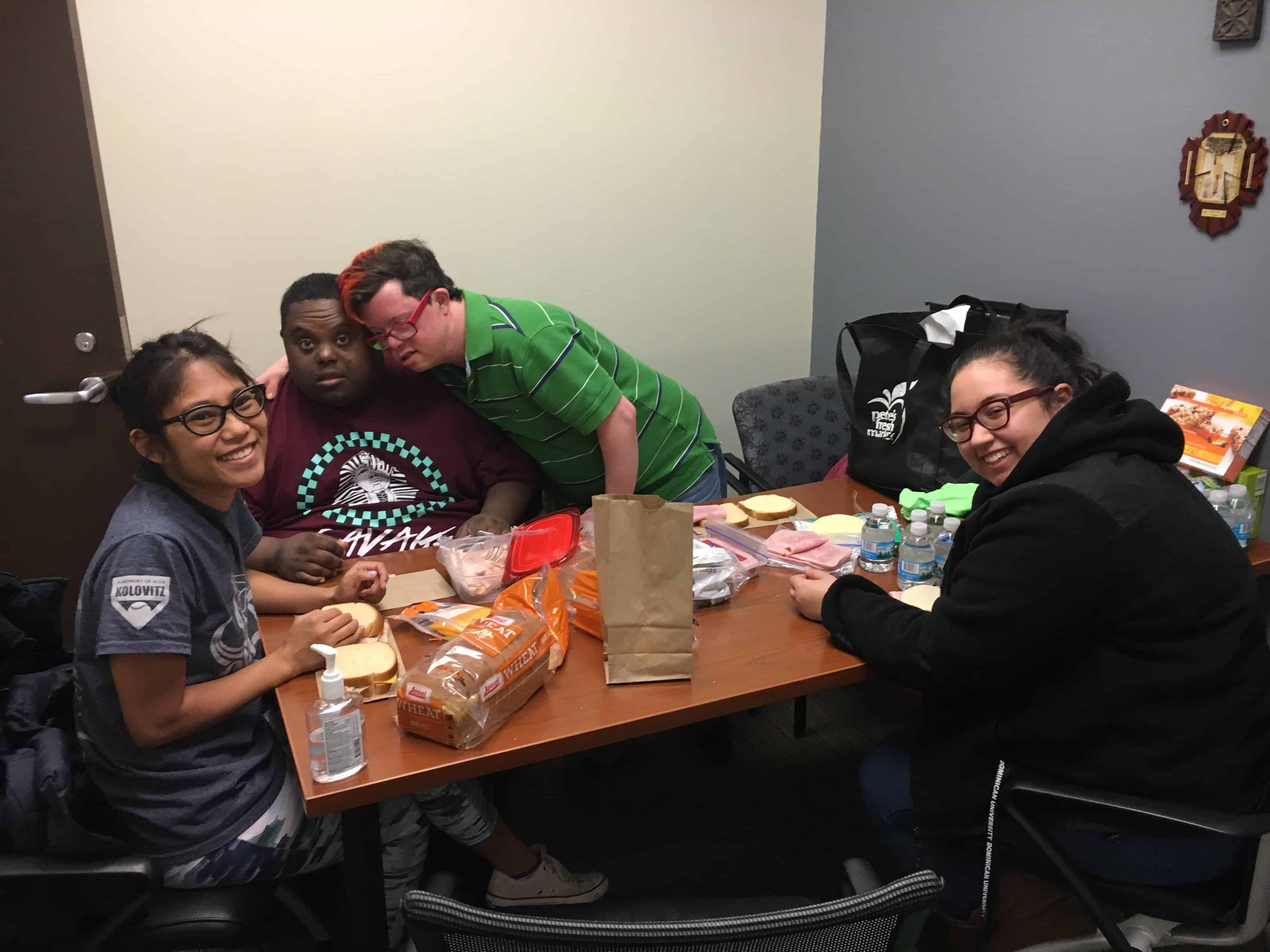 This spring, we tried out some new nutrition endeavors. During the first part of the semester, our intern and Warriors took their nutrition lessons to another local disability service agency, Aspire, and led activities with their participants. During the ladder half of the semester we participated in the Dominican University Recipe Box program and helped DU nutrition students and faculty prepare special, nutritious 3-course lunches for students and community members at the DU campus. We had a great time this semester working with Aspire and DU Nutrition!