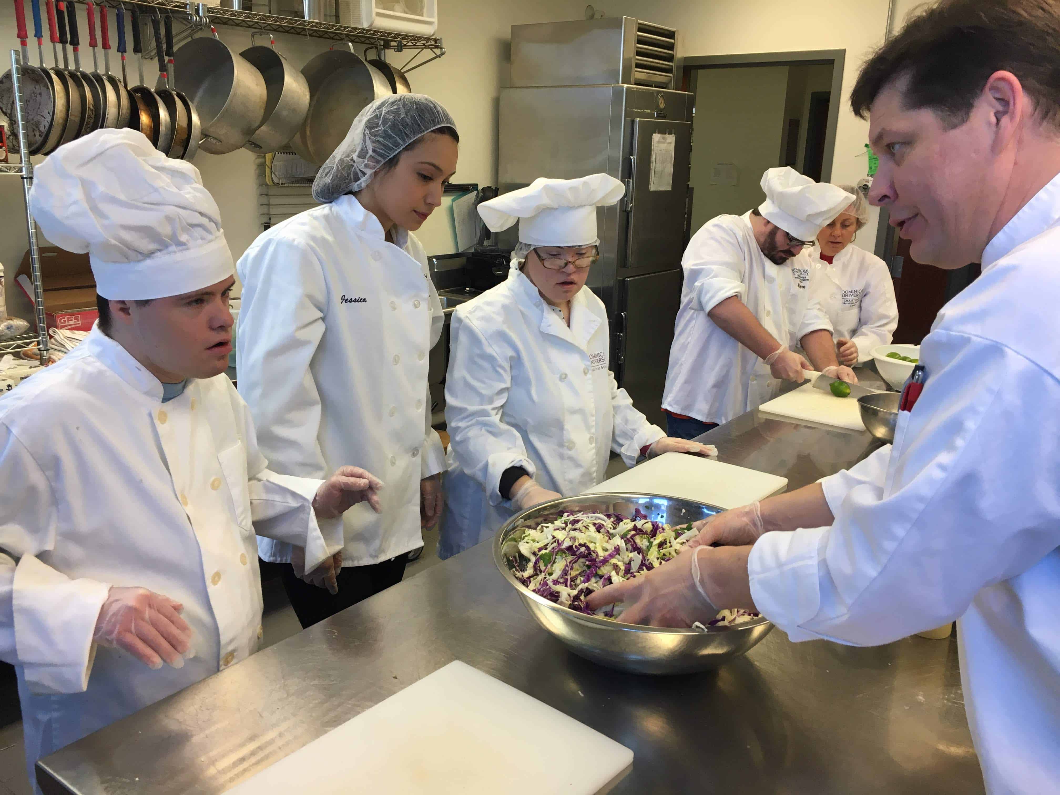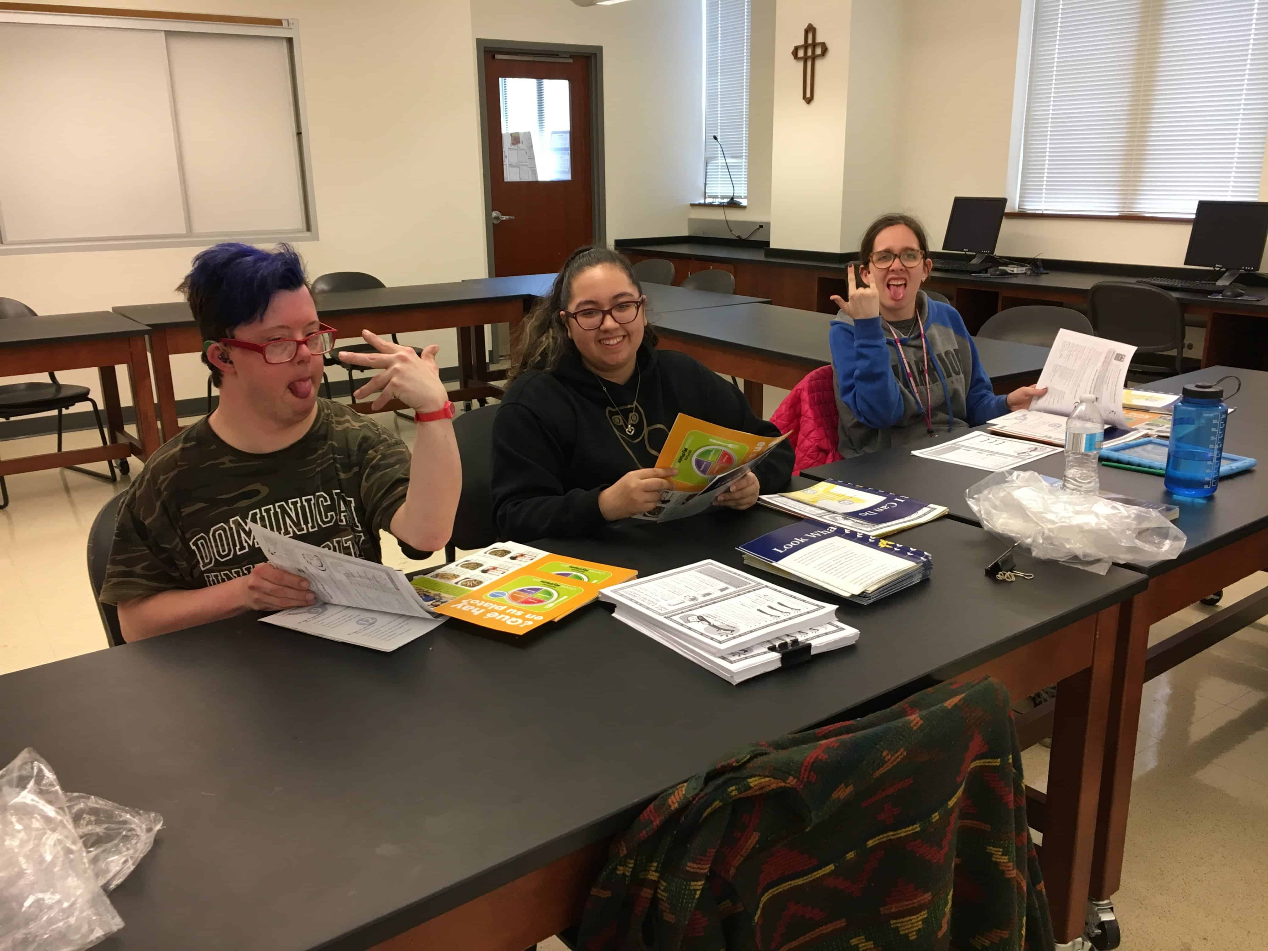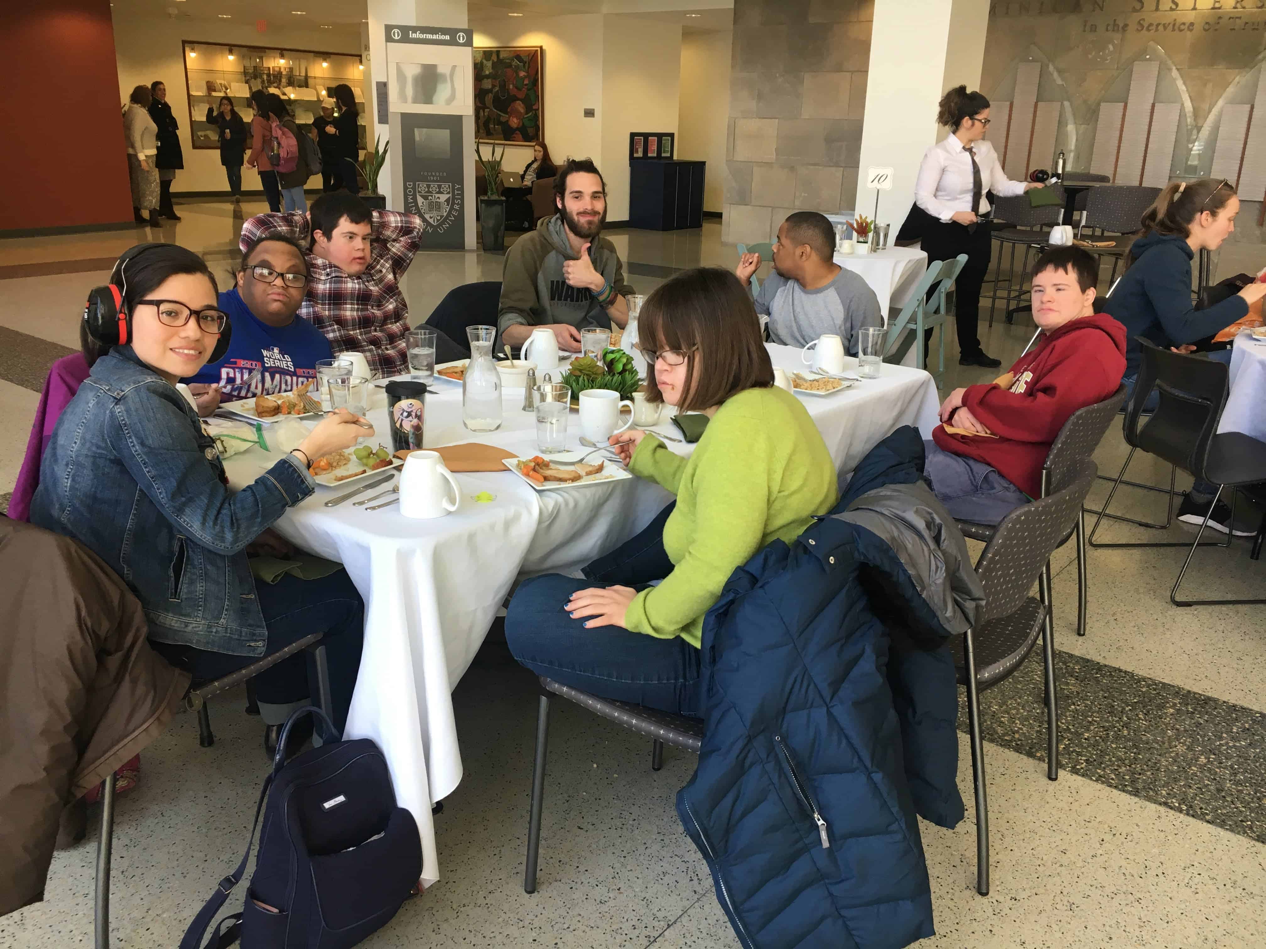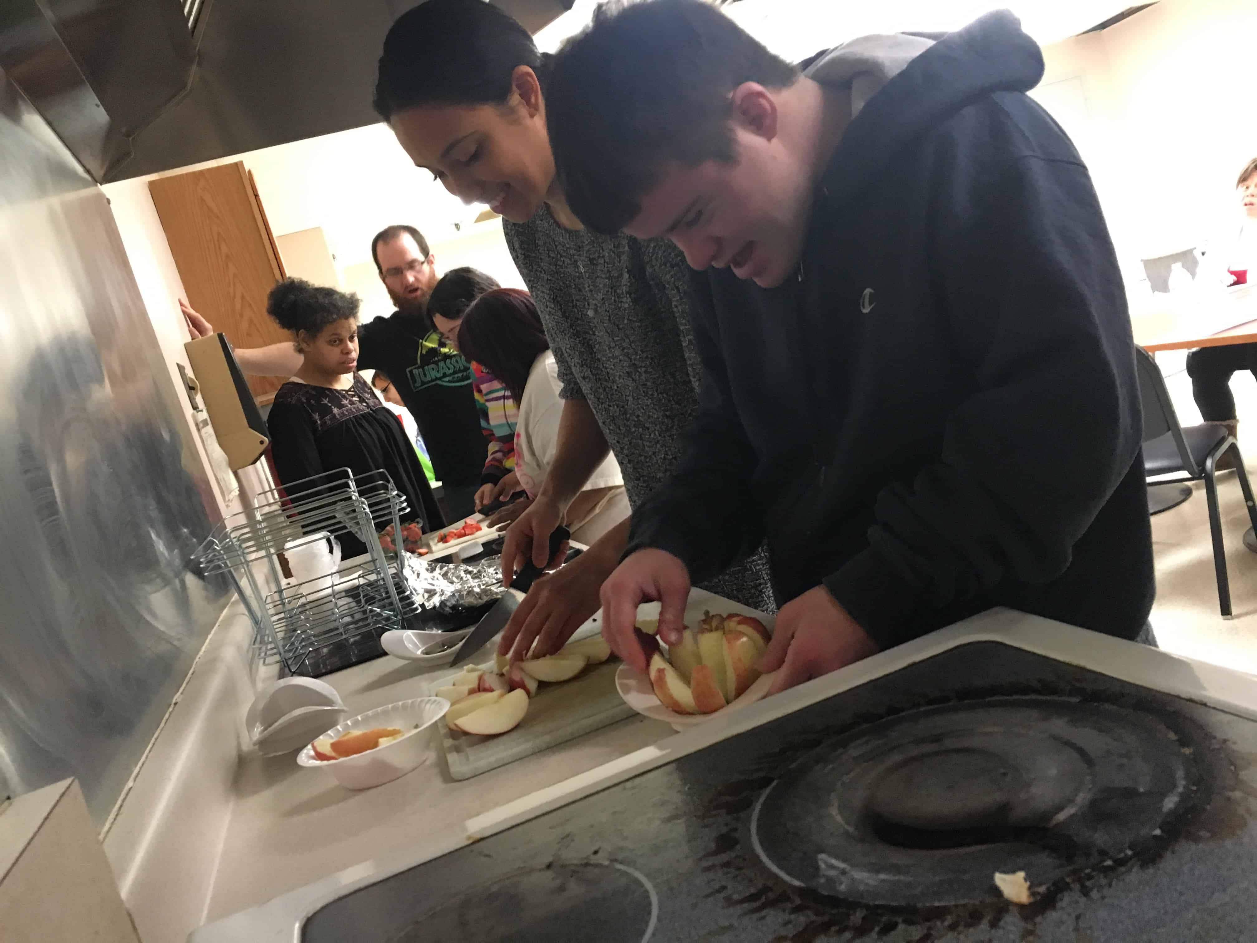 This spring, we tried out some new nutrition endeavors. During the first part of the semester, our intern and Warriors took their nutrition lessons to another local disability service agency, Aspire, and led activities with their participants. During the ladder half of the semester we participated in the Dominican University Recipe Box program and helped DU nutrition students and faculty prepare special, nutritious 3-course lunches for students and community members at the DU campus. We had a great time this semester working with Aspire and DU Nutrition!