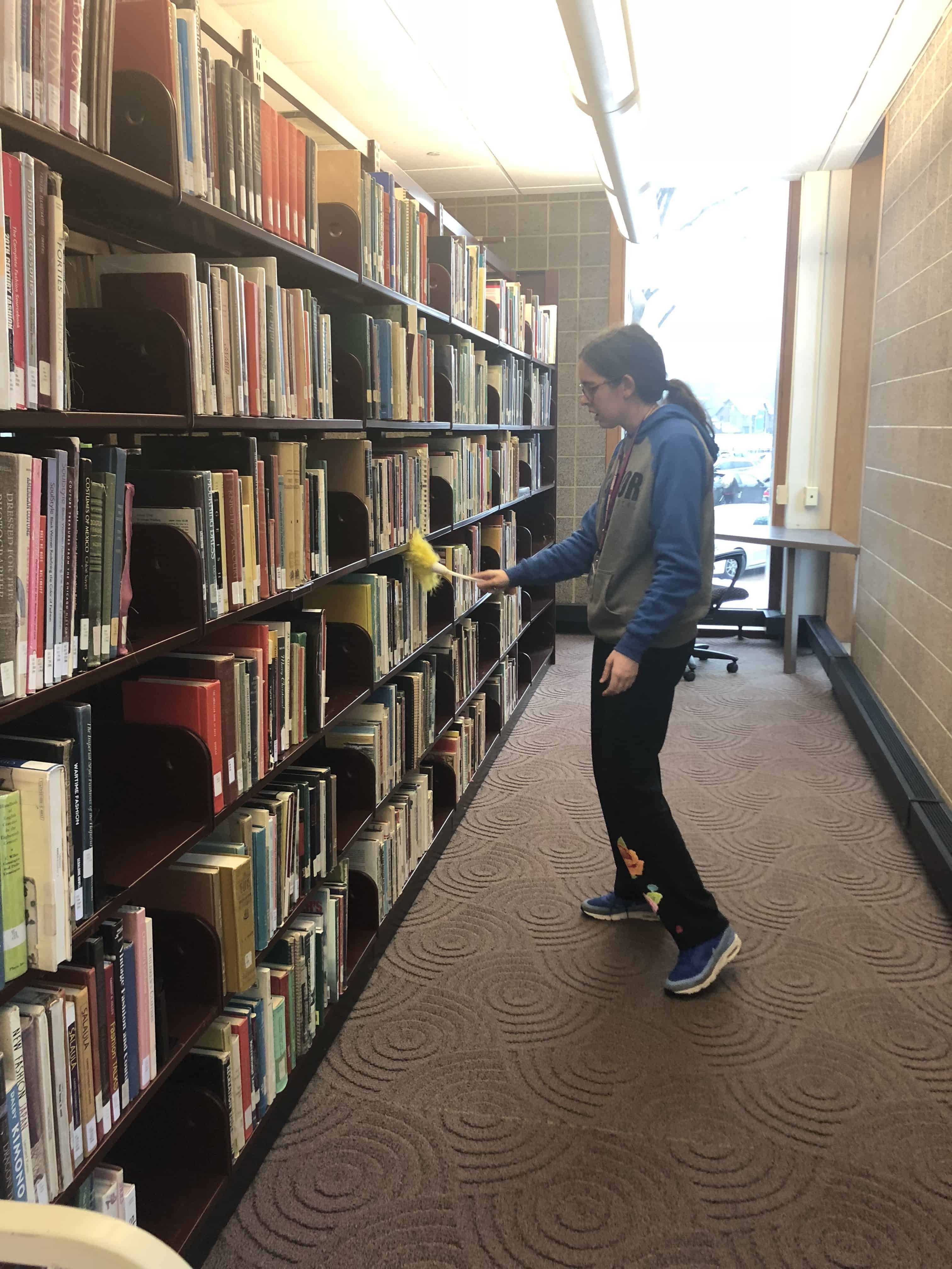 - Library (cleaning, dusting, and organizing books and bookshelves),