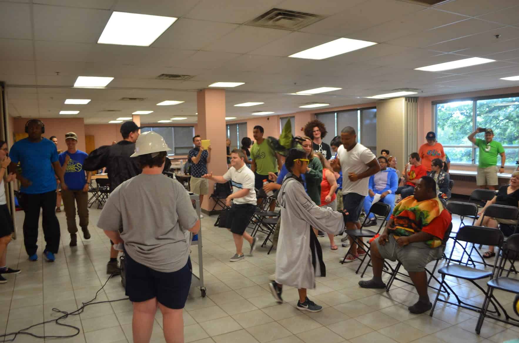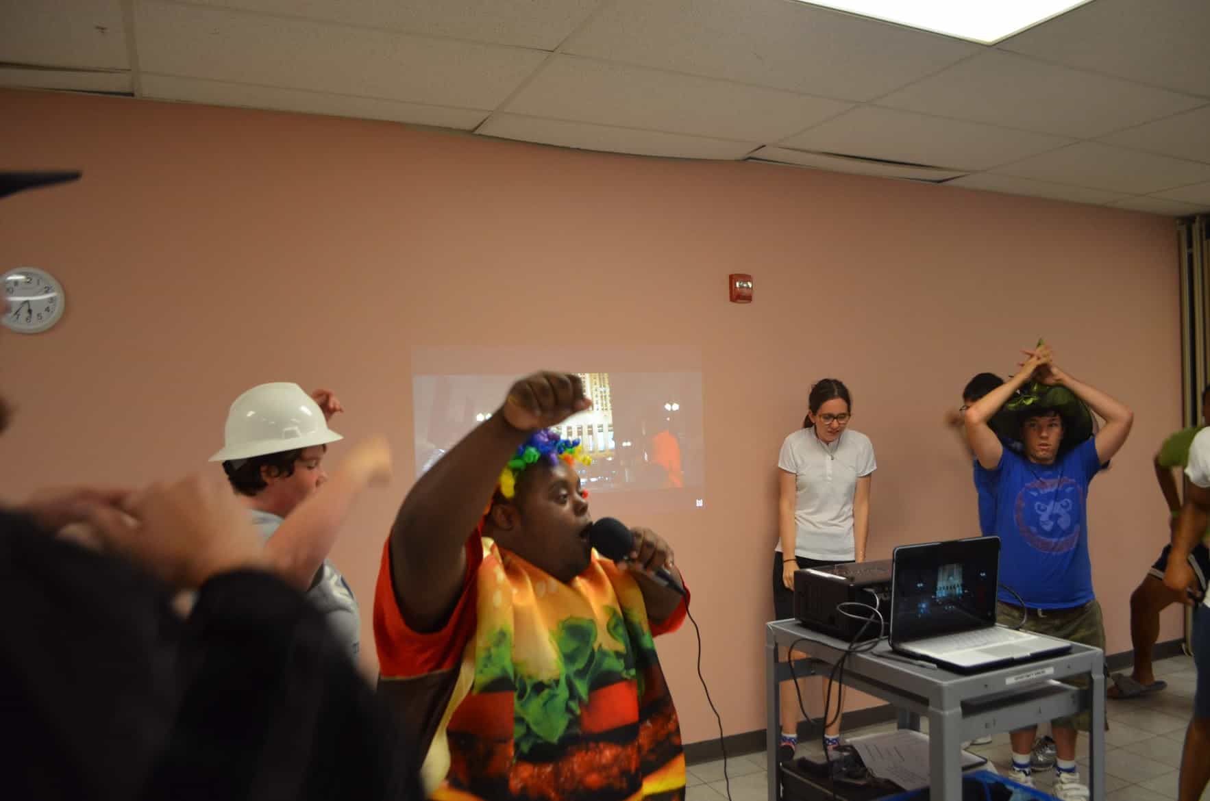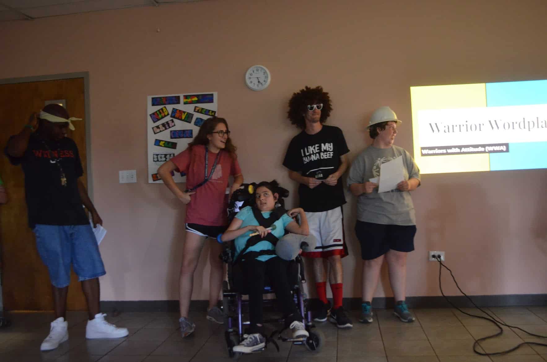 Then they were treated to a performance by the Warrior Comedy group, which included some hilarious joke-telling (0:18), Star Wars sketch comedy (1:09), and a roast of the OK staff (2:45)! The Warrior Hip-Hop group kept the party rolling with a performance of an original group rap song, “Warrior Wordplay” (7:09), some freestyling (10:45) and a group dance party to “Angels” by the Chance the Rapper ft. Saba (14:12)!