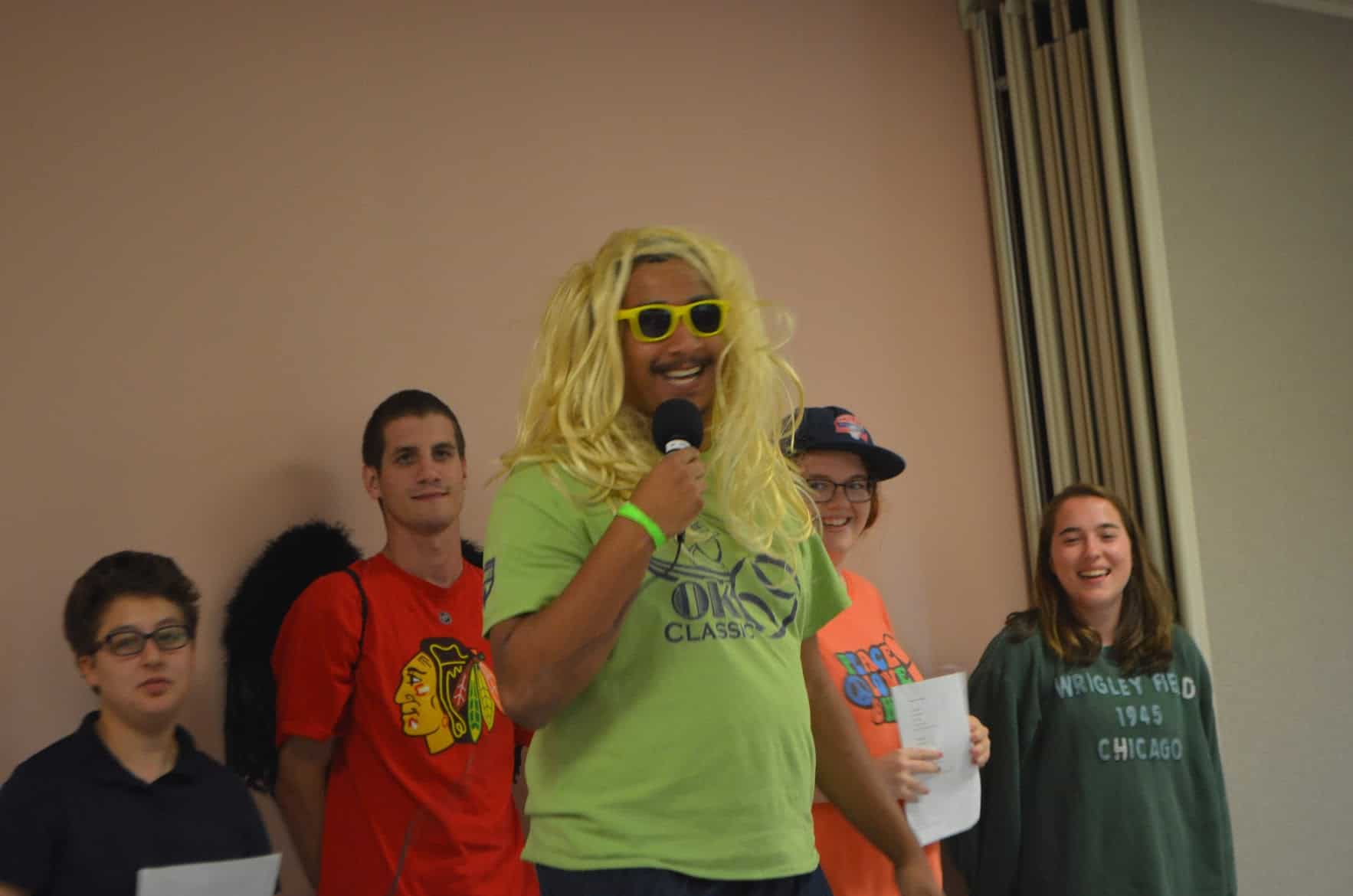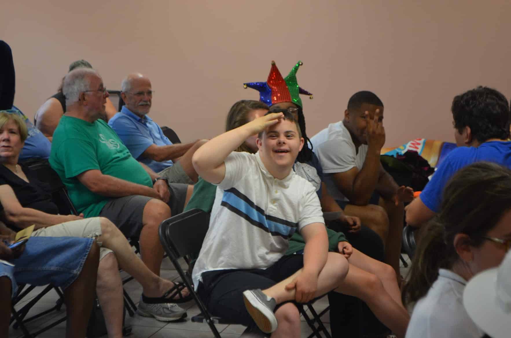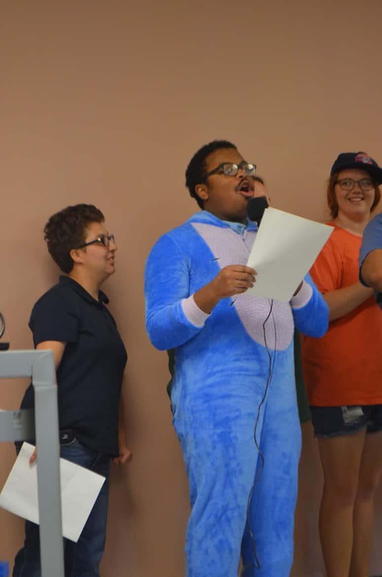 Then they were treated to a performance by the Warrior Comedy group, which included some hilarious joke-telling (0:18), Star Wars sketch comedy (1:09), and a roast of the OK staff (2:45)! The Warrior Hip-Hop group kept the party rolling with a performance of an original group rap song, “Warrior Wordplay” (7:09), some freestyling (10:45) and a group dance party to “Angels” by the Chance the Rapper ft. Saba (14:12)!