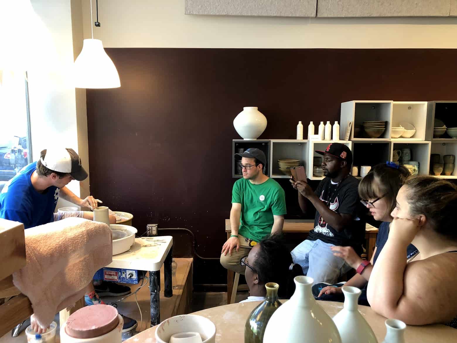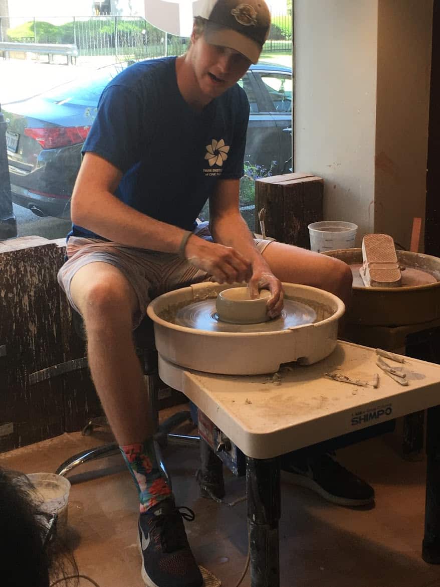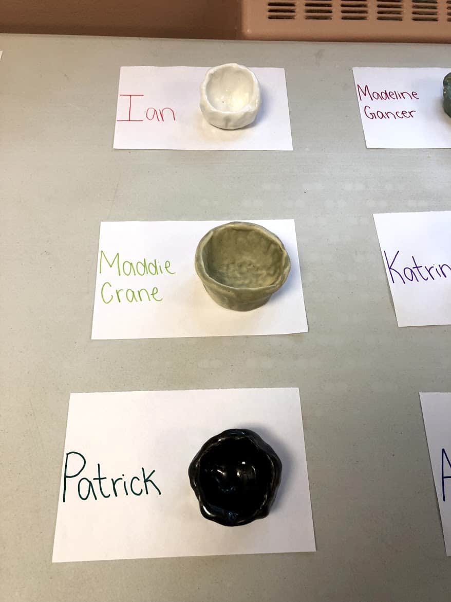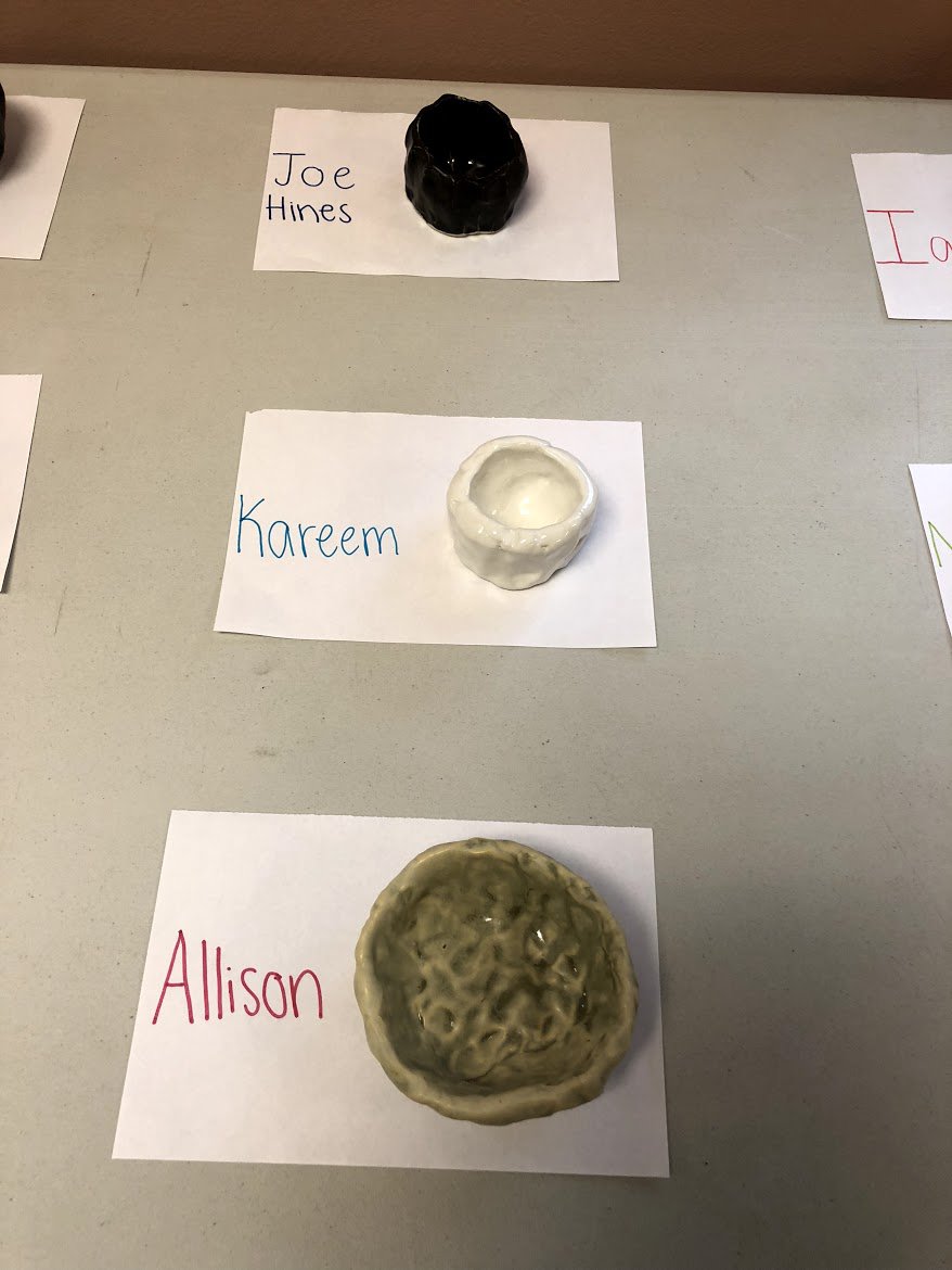 “We made some bowls from clay. I put mine on the counter at my house. We went to a pottery studio where they spun the clay. We met the worker there. Thank you for practicing clay with us!” | Kareem M.