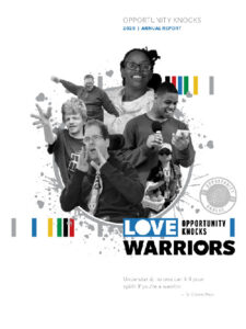 Each year we innovate, create and play witness to amazing things happening at Opportunity Knocks. We do our best to rally our team to create a full account of those stories through the annual report so that all of the amazing people who support the mission know their impact. Click below and enjoy!